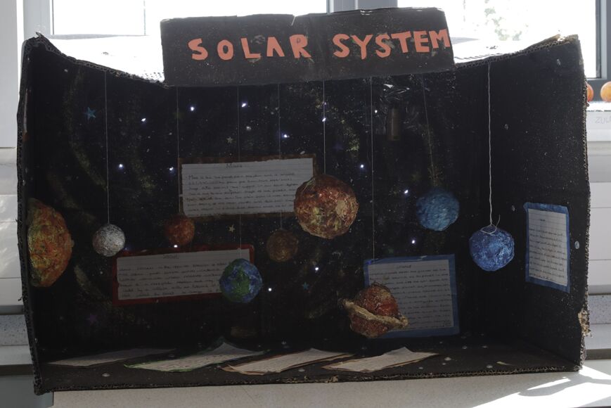 The class constructed models of the Solar System as part of an End of Year Project.