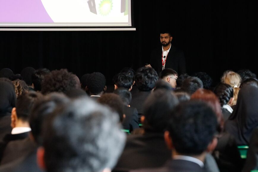 Posted on: 30/01/2026Mayfield alumni, Amaan Perwiz, who was Head boy at Mayfield whilst in the Sixth Form, delivered a presentation about his degree apprenticeship with BP Pulse to our Year 9 students.